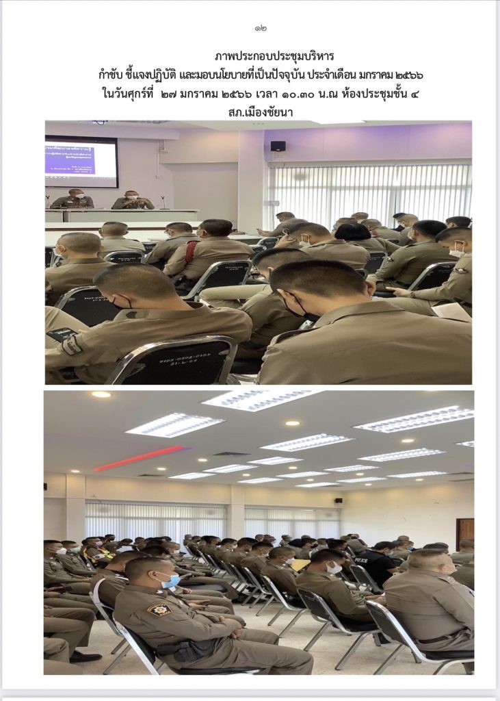 การประชุมบริหารประจำเดือน ม.ค.66 4 กุมภาพันธ์ 2566 โดย admin@tu / ข่าวภารกิจผู้บังคับบัญชา จำนวนผู้เข้าชม : 96 วันศุกร์ ที่ 27 มกราคม 66 เวลา 10.30 น.พ.ต.อ.ปฏิกรณ์ หาญหัตถกิจ ผกก.สภ.เมืองชัยนาท พร้อมด้วย ผู้บังคับบัญชาทุกสายงาน ประชุมบริหาร ประจำเดือน ม.ค.66 โดย กำชับชี้แจงการปฏิบัติและมอบนโยบาย FacebookFacebookXXLINELine