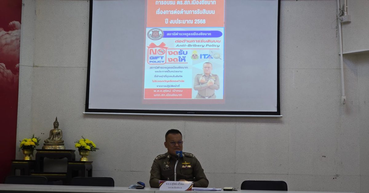 วันที่ 29 พ.ย.67 เวลา 11.00 น. พ.ต.อ.สุรัตน์ เป้าทอง ผกก.สภ.เมืองชัยนาท ได้จัดกิจกรรมอบรมชี้แจงการต่อต้านการรับสินบนของหน่วยงาน
