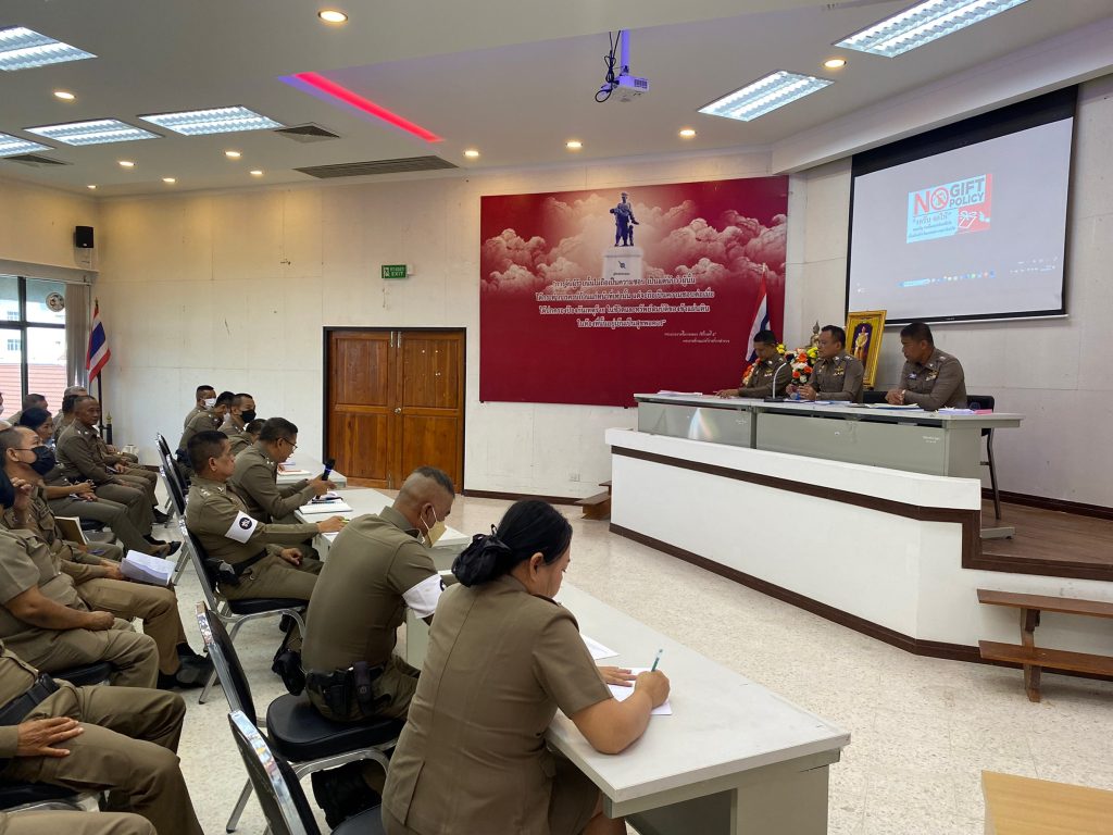 วันที่ ๒๑ ธันวาคม ๒๕๖๖ เวลา ๐๙.๐๐ น.พ.ต.อ.สุรัตน์ เป้าทอง ผกก.สภ.เมืองชัยนาท ประชุมชี้แจงแจ้งประกาศของสถานีเรื่องการต่อต้านการรับสินบนและไม่รับของขวัญและของกำนัลของหน่วยให้ข้าราชการตำรวจในสังกัดถือปฏิบัติ