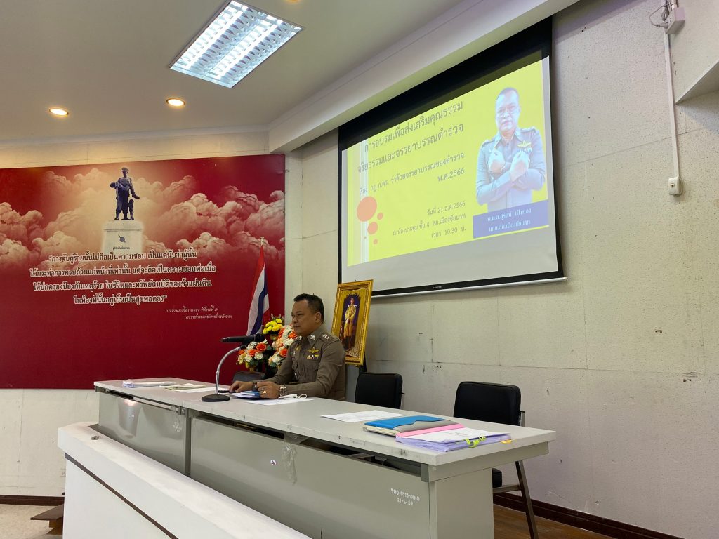 วันที่ ๒๑ ธ.ค.2566 เวลา 09.30 น. พ.ต.อ.สุรัตน์ เป้าทอง ผกก.สภ.เมืองชัยนาท จัดอบรมข้าราชการตำรวจในสังกัด เรื่อง ข้าราชการตำรวจพึงปฏิบัติตน เพื่อรักษาจริยธรรม ในการประชุมบริหารประจำเดือนของหน่วย