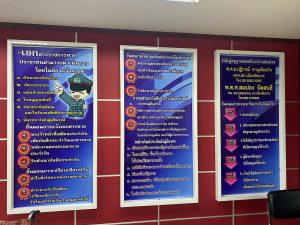 ติดป้ายชื่องาน (ภาษาไทย-ภาษาอังกฤษ)ครบถ้วน ได้แก่-ลงประจำวันเอกสารหาย-พนักงานสอบสวนเวร-เสมียนประจำวัน-เปรียบเทียบปรับ-ประชาสัมพันธ์