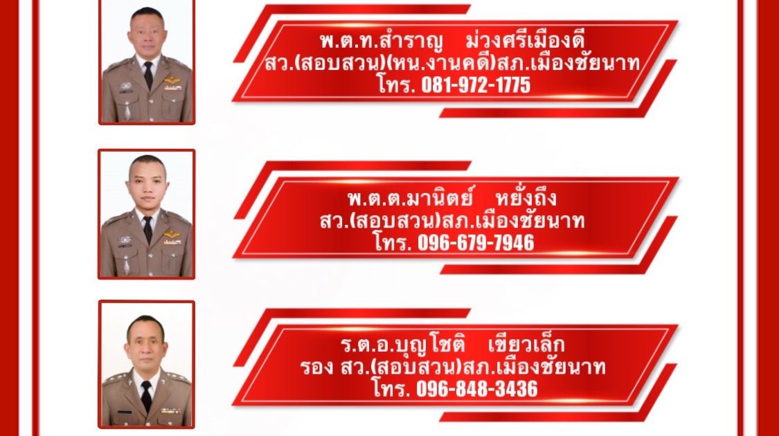 รายชื่อพนักงานสอบสวน พร้อมหมายเลขโทรศัพย์เพื่อติดต่อสอบถามคดี