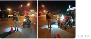 ร.ต.ต.ภูศิษฐ์ ภู่แก้ว รอง สว(ป.)ฯ ปฏิบัติหน้าที่ร้อยเวร 20 พร้อมสายตรวจจยย.รวม 6 นาย ตั้งจุดตรวจ/จุดสกัด (ว43)บริเวณหน้าตู้ยามเจ้าสามพระยา อ.เมือง จ.ชัยนาท ตั้งแต่เวลา 00.30 – 01.30 น.