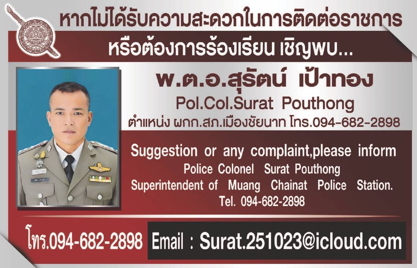 ติดต่อสอบถามความก้าวหน้าการดำเนินคดี 23 มกราคม 2567 โดย admin@tu / ไม่มีหมวดหมู่ จำนวนผู้เข้าชม : 2,212 ติดต่อพนักงานสอบสวน พ.ต.ท.ธัมมัญชิษฐ์ สิทธิศาสตร์ คลิ๊กโทรด้านบน พ.ต.ท.สำราญ ม่วงศรีเมืองดี คลิ๊กโทรด้านบน พ.ต.ต.มานิตย์ หยั่งถึง คลิ๊กโทรด้านบน ร.ต.อ.พิสิฐ บุญมี คลิ๊กโทรด้านบน ร.ต.อ.บุญโชติ เขียวเล็ก คลิ๊กโทรด้านบน ร.ต.ท.หญิง ณัฐการ ปิยโชติ คลิ๊กโทรด้านบน FacebookFacebookXXLINELine