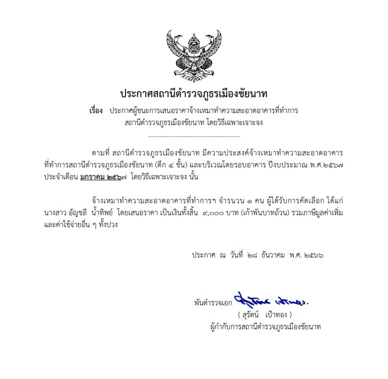 ประกาศสถานีตำรวจภูธรเมืองชัยนาท
