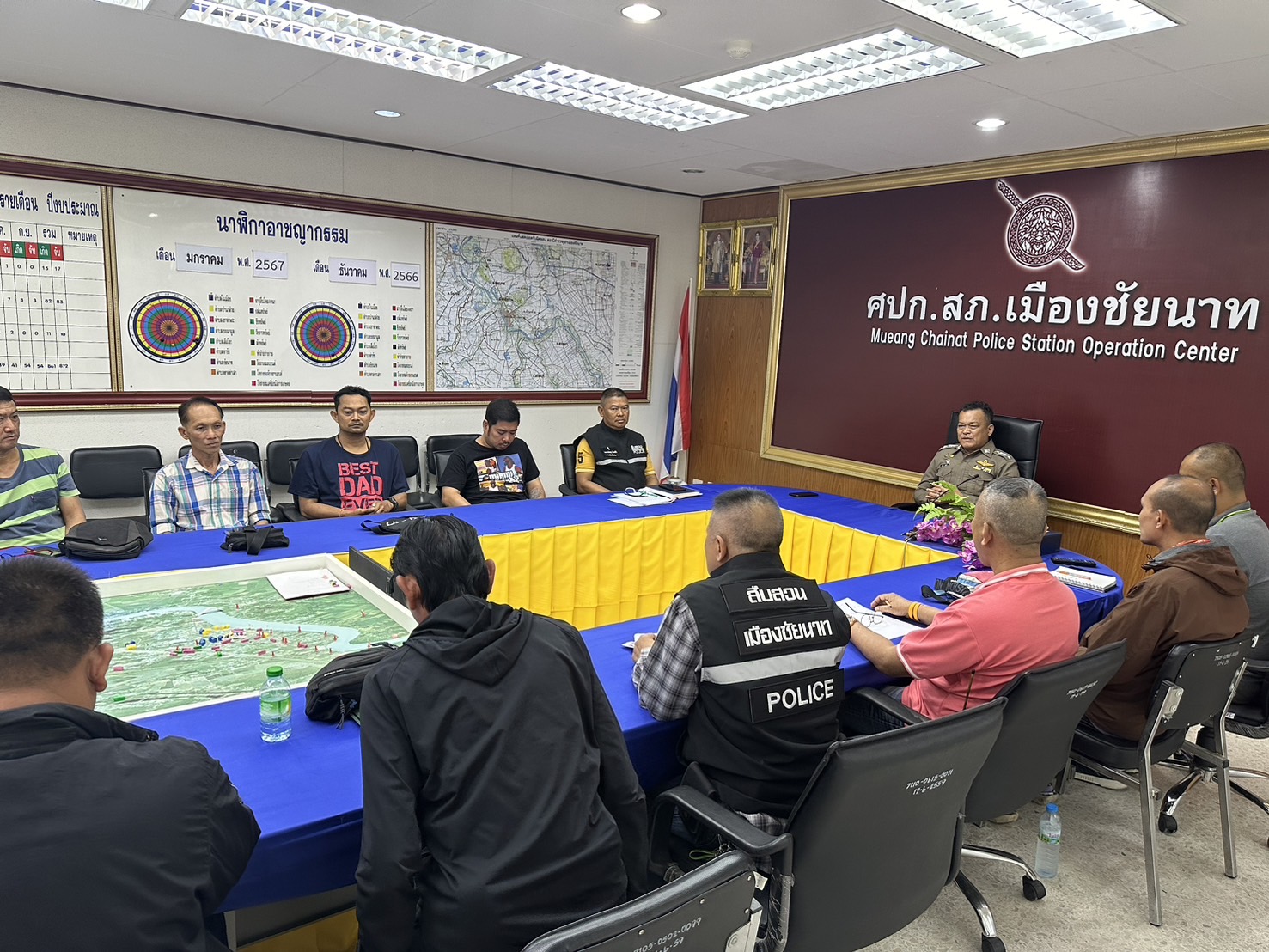 พ.ต.อ.สุรัตน์ เป้าทอง ผกก.สภ.เมืองชัยนาท พร้อมด้วย พ.ต.ท.สมพงษ์ แสดงฤทธิ์ รองผกก.สส.สภ.เมืองชัยนาท และ พ.ต.ท.พิเชษฐ อินทร์ต๊ะ สว.สส.สภ.เมืองชัยนาท พร้อมเจ้าหน้าที่ชุดสืบสวนเข้าร่วมประชุมชี้แจงข้ปอสั่งการและมอบนโยบายงานสืบสวน ณ ห้องประชุมศปก.สภ.เมืองชัยนาท