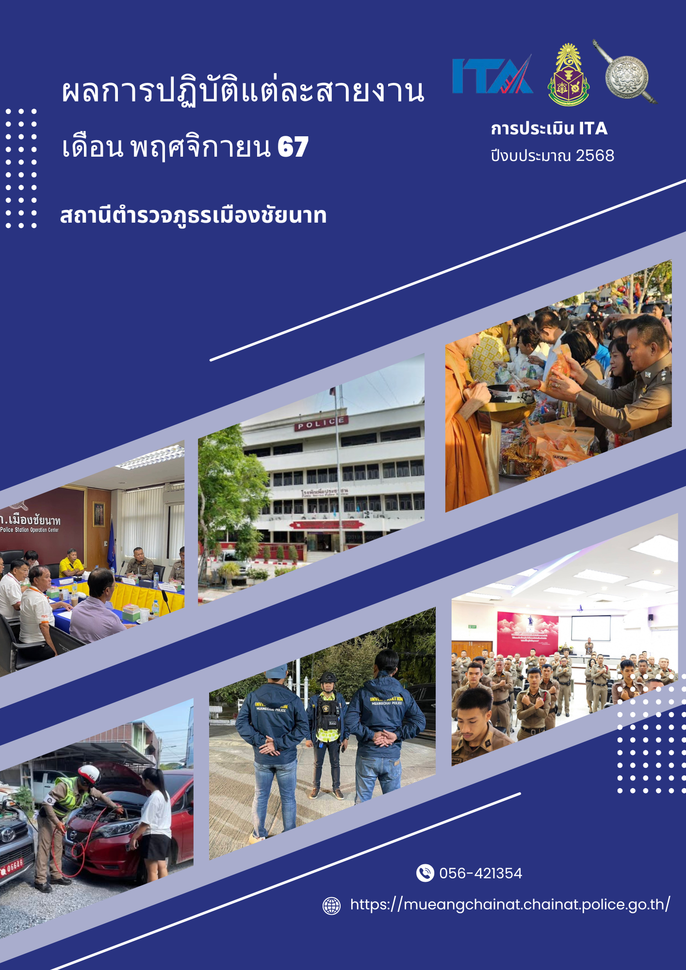 แต่ละวันงานสอบสวนจะมีการรายงานผลการดำเนินงาน สรุปผลคดี โดยมี นำเสนอผลการปฏิบัติมีรายละเอียด ให้ทราบ พอสังเขป ดังนี้ วันนี้ ( 3 พ.ย. 67) เวลา 06.00 – 18.00 น.พ.ต.ต.มมานิตย์ หยั่งถึง ปฏิบัติหน้าที่เวรสอบสวน สภ.เมืองชัยนาท โทร 096-6797946ร.ต.ท.อัครภัทร จันทร์หอม ปฏิบัติหน้าที่ประจำวันร.ต.ท.ชิดชัย สาลีผล ปฏิบัติหน้าที่เปรียบเทียบปรับร.ต.ท.ทิพากร สุขม่วง ปฏิบัติหน้าที่สิบเวร ส.ต.ต.ภูริภัทร เตยหอม ผู้ช่วยพนักงานสอบสวนและชุดสืบสวนพร้อมปฏิบัติหน้าที่สรุปผลคดีวันที่ 2 พ.ย. 67 ดังนี้