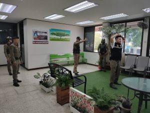 เมืองชัย 2 0 และสายตรวจ จยย.ทำการฝึกทบทวนยุทธวิธีประจำวัน ทบทวนการ ตรวจค้นบุคคล