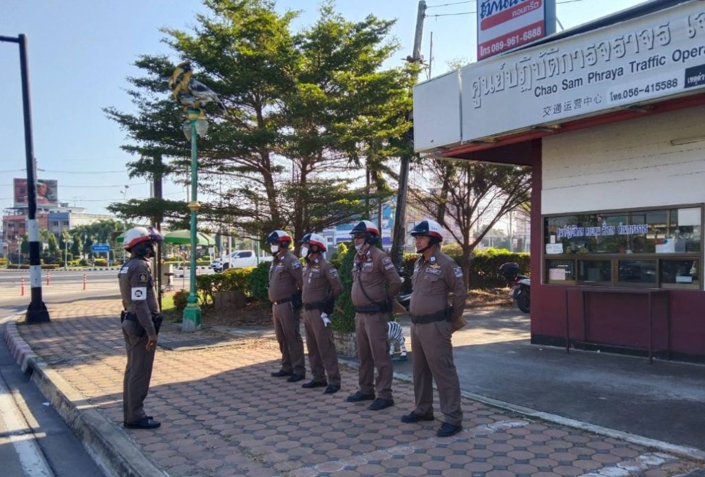 รองสว.จร.สภ.เมืองชัยนาท อบรมปล่อยแถวสายตรวจจราจร กวดขันวินัยจราจรตามมาตรการ10รสขม. หน้าศูนย์ปฏิบัติการตู้เจ้าพระยา