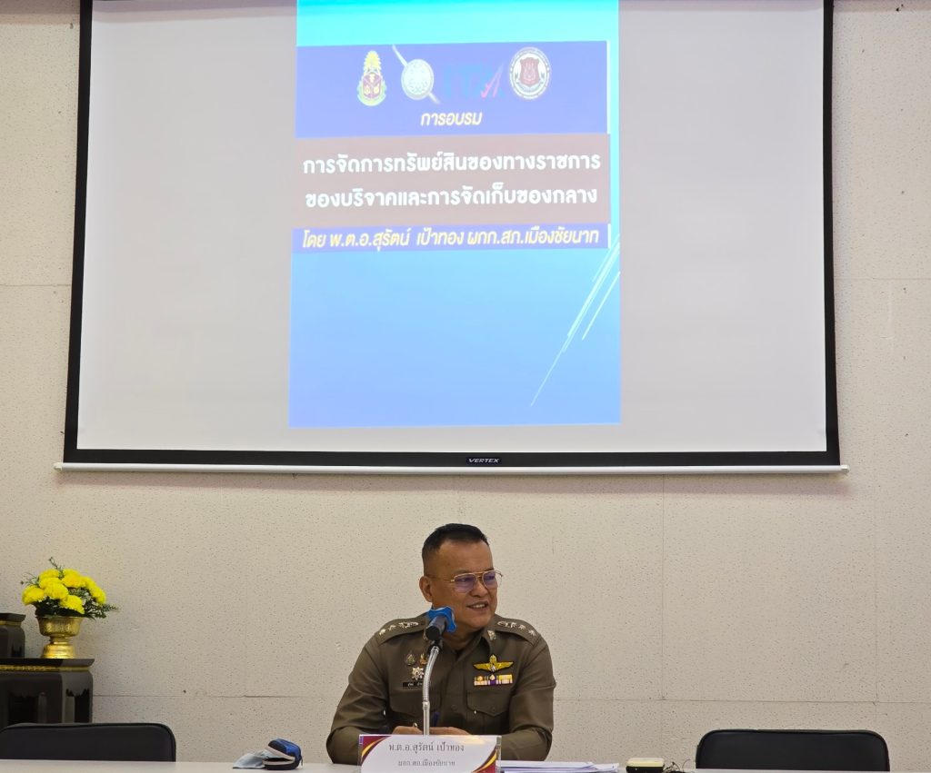 วันที่ 29 พ.ย.67 เวลา 09.00 น. พ.ต.อ.สุรัตน์  เป้าทอง ผกก.สภ.เมืองชัยนาทได้เรียกข้าราชการตำรวจในสังกัดเข้ารับการอบรมชี้แจงเรื่องการจัดการทรัพย์สินทางราชการ ของบริจาคและการจำหน่ายของกลางในคดี ให้ข้าราชการตำรวจในสังกัดทุกนายได้ทราบ