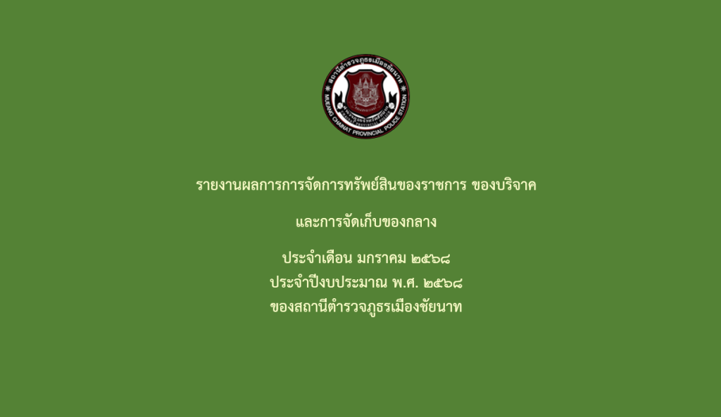 รายงานผลการการจัดการทรัพย์สินของราชการ ของบริจาค และการจัดเก็บของกลาง ประจำเดือน มกราคม 2568 ประจำปีงบประมาณ พ.ศ. 2568ของสถานีตำรวจภูธรเมืองชัยนาท