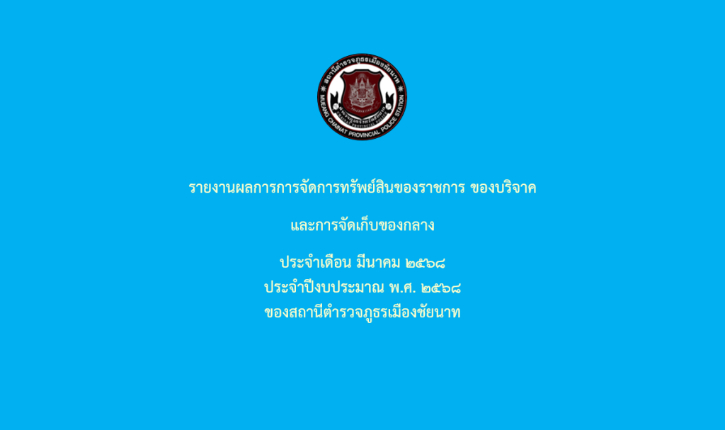 รายงานผลการการจัดการทรัพย์สินของราชการ ของบริจาค และการจัดเก็บของกลาง ประจำเดือน มีนาคม 2568 ประจำปีงบประมาณ พ.ศ. 2568ของสถานีตำรวจภูธรเมืองชัยนาท