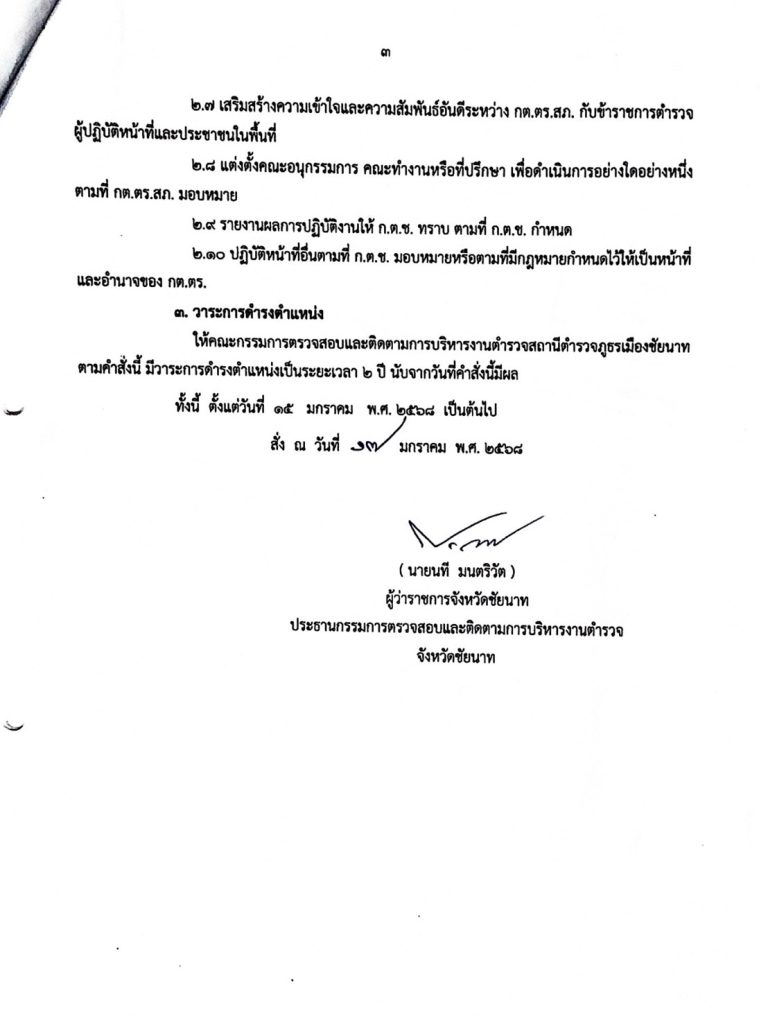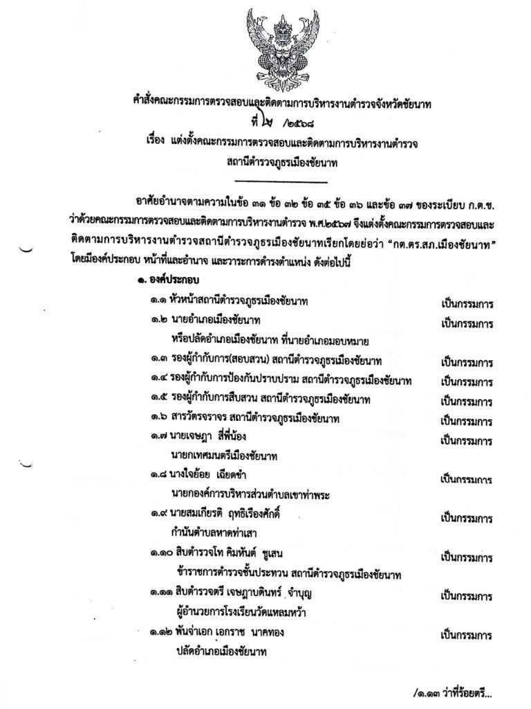 คำสั่ง แต่งตั้งคณะกรรมการตรวจสอบและติดตามการบริหารงานตำรวจสถานีตำรวจภูธรเมืองชัยนาท