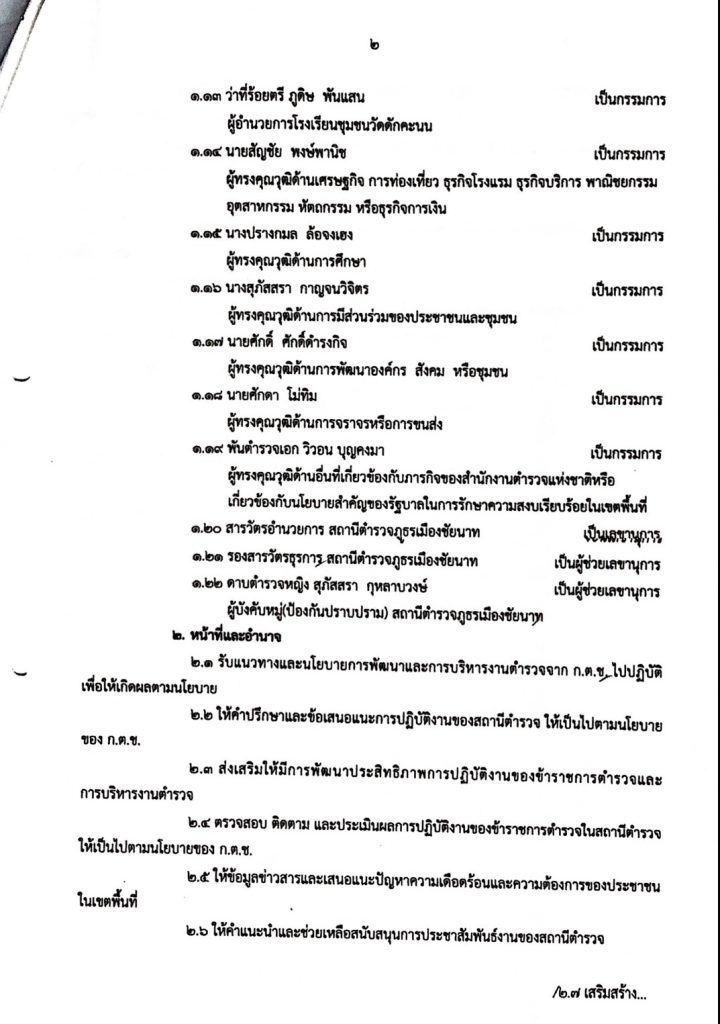 ข้าราชการตำรวจสถานีตำรวจภูธรเมืองชัยนาทที่ได้รับมอบหมาย เป็นกรรมการ