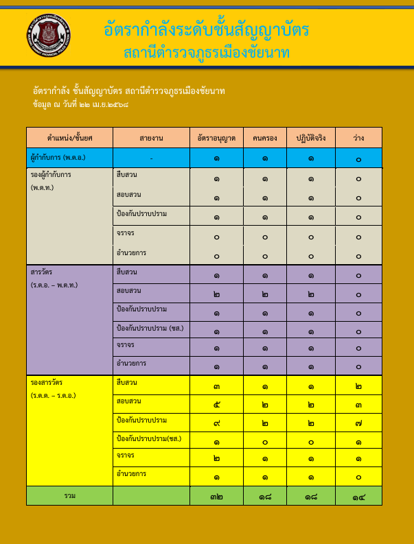 อัตรากำลังของสถานีตำรวจ ระบุข้อมูล ตั้งแต่วันที่ ………………………………. เป็นต้นไป