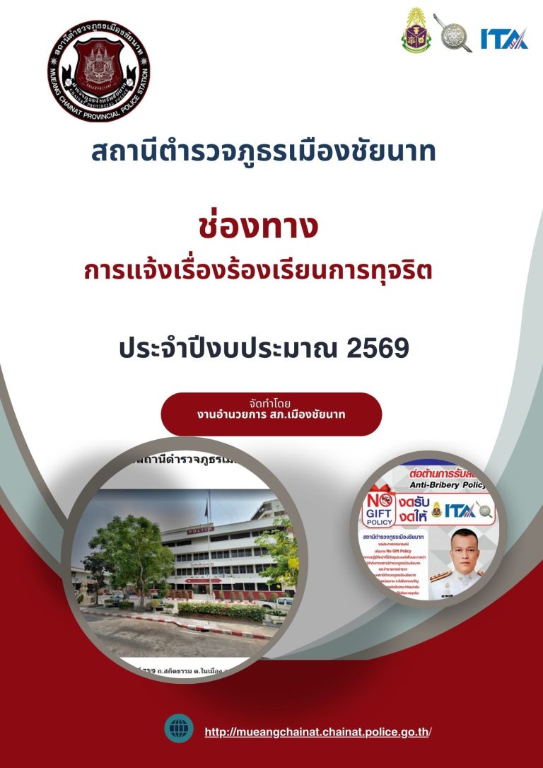 -จัดทำประกาศ สถานีตำรวจภูธรเมืองชัยนา  เรื่อง มาตรการป้องกันผู้แจ้งเบาะแสการทุจริต