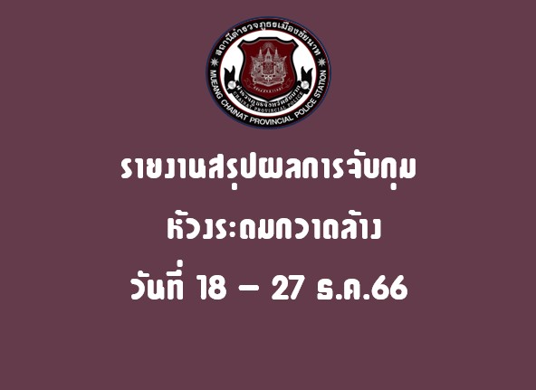 สรุปผลการจับกุม ห้วงระดมกวาดล้าง วันที่ 18 – 27 ธ.ค.66 1.จับกุมยาเสพติด 15 ราย ผู้ต้องหา 16