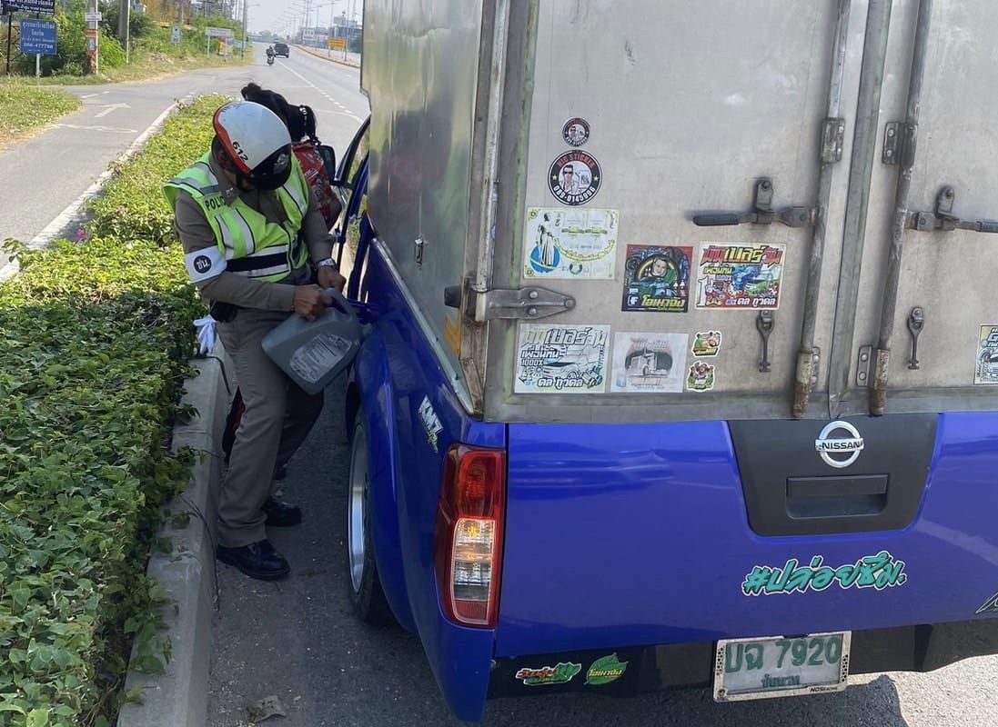 1ธค67 เวลา14:20งานจราจรสภ.เมืองชัยนาท สายตรวจจราจรรหัส612 ได้รับแจ้งประชาชนขอความช่วยเหลือรถนำ้มันหม