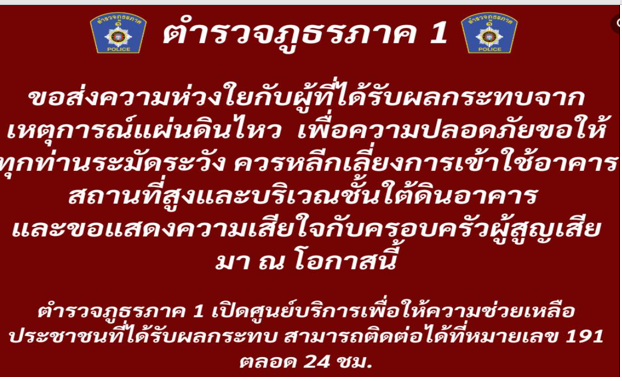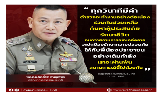 “ทุกวินาทีมีค่า ตำรวจจะทำงานอย่างต่อเนื่อง ร่วมกันช่วยเหลือค้นหาผู้ประสบภัย รักษาชีวิต จนกว่าส