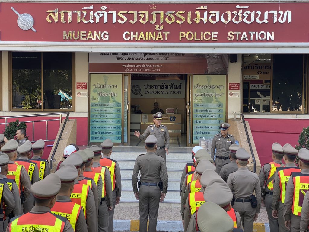 วันนี้ (16 ม.ค.66) เวลา 10.00 น. พ.ต.อ.สุรัตน์ เป้าทอง ผกก.สภ.เมืองชัยนาท, พ.ต.ท.ชัชวาล มหาศรานนท์ รอง ผกก.ป.สภ.เมืองชัยนาท, พ.ต.ท.พิเชษฐ อินทร์ต๊ะ สว.สส.สภ.เมืองชัยนาท, ว่าที่ พ.ต.ท.พัฒนธรวิทย์ หอมหวล สวป.สภ.เมืองชัยนาท และ ว่าที่ พ.ต.ต.สุเทพ วงศ์แก้ว สวป.(ชส.)สภ.เมืองชัยนาท ตรวจจำนวนข้าราชการตำรวจ สภ.เมืองชัยนาท และข้าราชการตำรวจที่สนับสนุนภารกิจ ถปภ. สภ.เมืองชัยนาท ณ บริเวณหน้า สภ.เมืองชัยนาท เพื่อชี้แจงภารกิจการปฏิบัติหน้าที่ ถปภ. แด่ สมเด็จพระกนิษฐาธิราชเจ้า กรมสมเด็จพระเทพรัตน์ราชสุดาฯ สยามบรมราชกุมารี เสด็จพระราชดำเนินไปทรงปฏิบัติพระราชกรณียกิจที่ดินในพระนามาภิไธย พื้นที่ ต.ห้วยกรด อ.สรรคบุรี จ.ชัยนาท ได้ทบทวนซักซ้อมการปฏิบัติ พร้อมทั้งตรวจเครื่องแต่งกาย ทรงผม อุปกรณ์ที่เกี่ยวข้องต่างๆ และได้กำชับข้าราชการตำรวจที่ปฏิบัติหน้าที่ ห้ามสวมแว่นตาสีดำ ห้ามพกพาอาวุธทุกชนิด ปฏิบัติหน้าที่ด้วยความไม่ประมาท เน้นย้ำข้าราชการตำรวจที่ปฏิบัติหน้าที่ทุกนายเตรียมความพร้อม รอรับคำสั่งจากผู้บังคับบัญชาโดยเคร่งครัด ทุกนายรับทราบพร้อมปฏิบัติ