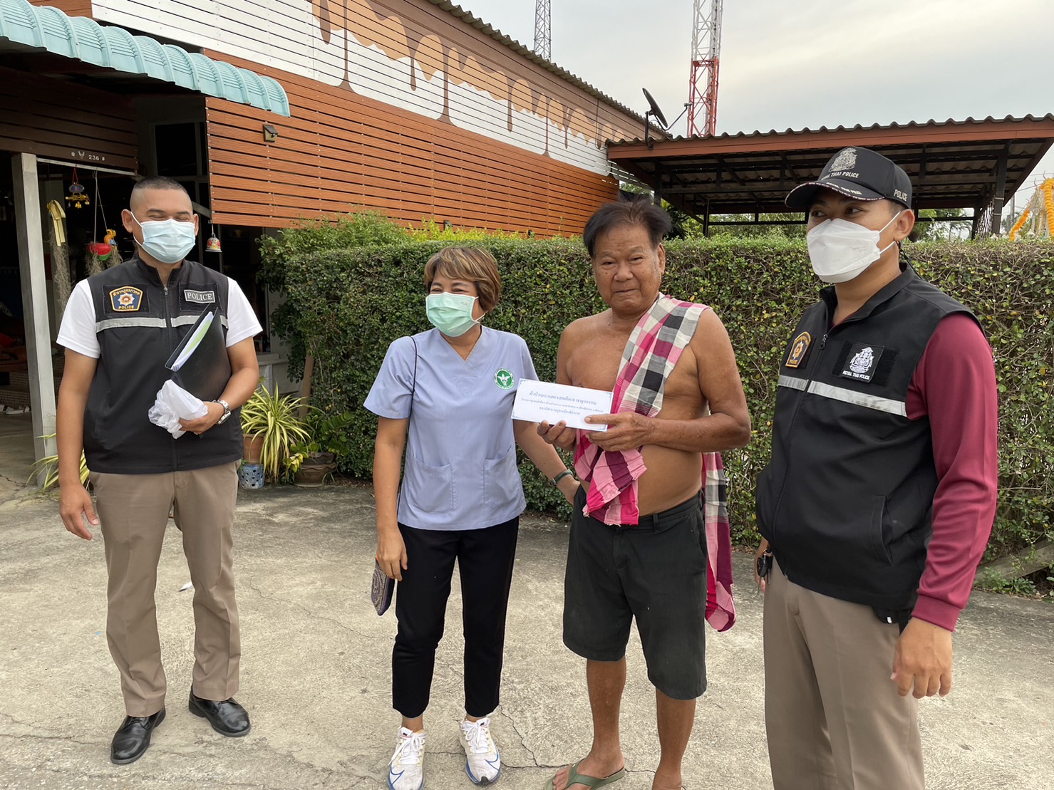 ➡️ นำโดย พ.ต.ต.พัฒนธรวิทย์ หอมหวล สวป.ฯ พร้อมด้วยชุดปฏิบัติการชุมชนยั่งยืนฯ เจ้าหน้าที่ รพ.สต.เขาท่าพระ และผู้ช่วยผู้ใหญ่บ้าน